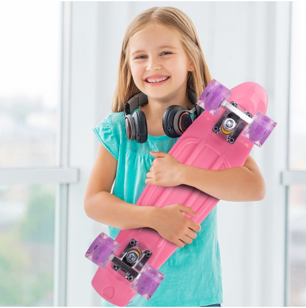 Skateboard cu led-uri pentru copii 56x15cm Roz