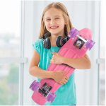 * Skateboard-ul Roz. cu roti din cauciuc moale, silentioase si de incredere, pot fi folosite chiar si in acasa - nu deterioreaza suprafata podelei!