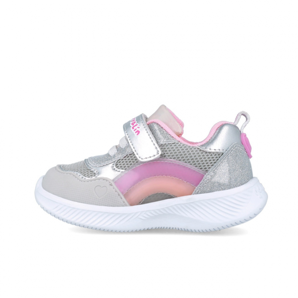 Sneakers pentru copii, Garvalin, cu leduri si curcubeu, argintiu, marimea 26