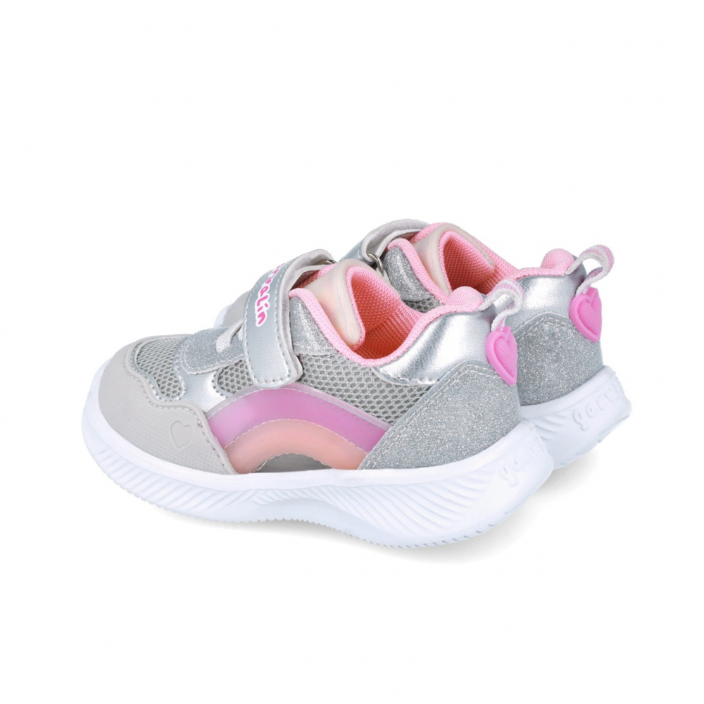 Sneakers pentru copii, Garvalin, cu leduri si curcubeu, argintiu, marimea 30