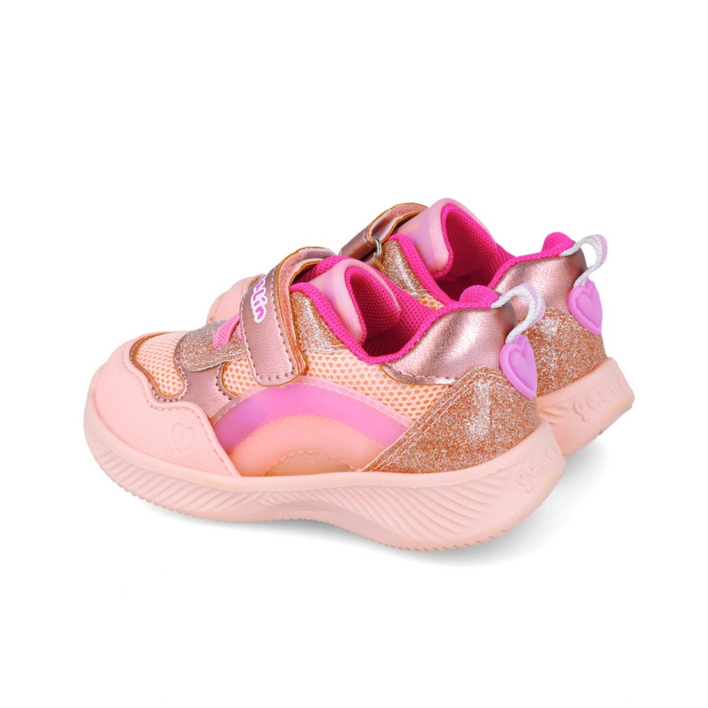 Sneakers pentru copii, Garvalin, cu leduri si curcubeu, roz, marime 23