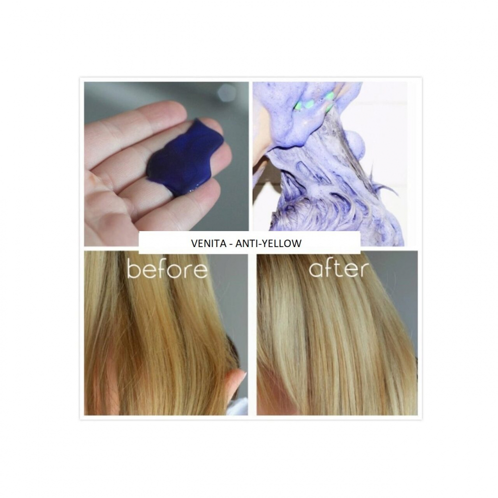 Caracteristici: - elimina eficient si imediat tonurile de galben - nuanteaza parul in tonuri de lavanda - formula concentrata foarte eficienta, se dilueaza cu apa - durata si intensitatea culorii depinde de cantitatea de produs adaugata