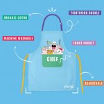• Buzunar frontal practic – ideal pentru ustensilele micului chef!