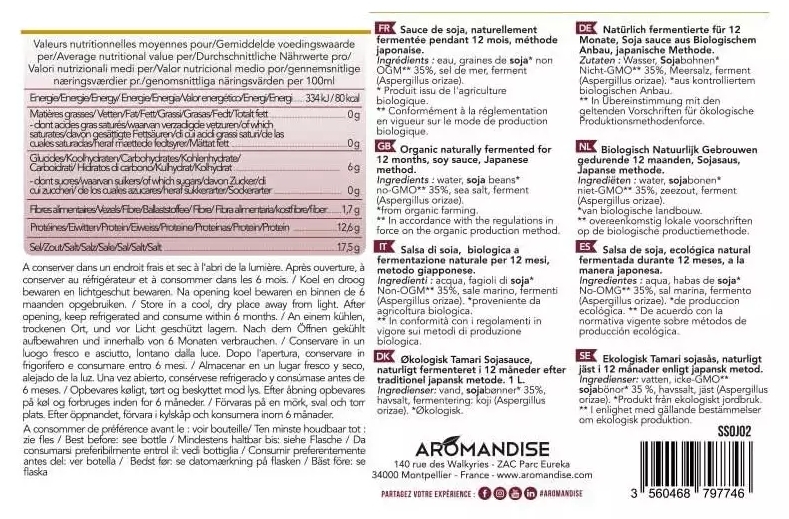 Ingrediente: apa, boabe de SOIA* 35%, sare de mare, Aspergillus oryzae.