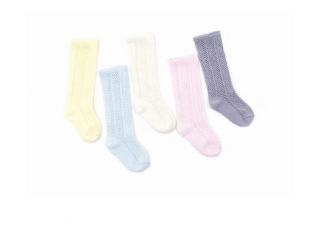 Sosete trei sferturi pentru fetite, cu model din tesatura. Ofera eleganta tinutelor micutelor domnisoare.