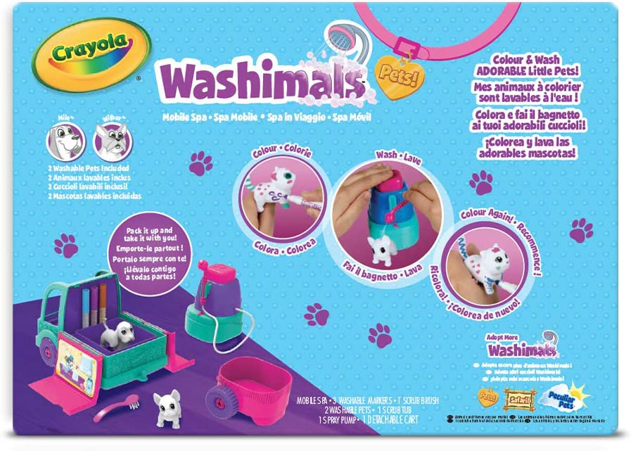 Ofera animalelor tale Washimals modele colorate si tratamente de infrumusetare in acest set de masini de jucarie Crayola Washimals Spa!