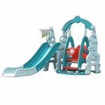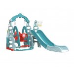 Spatiu de joaca 3 in 1 Nichiduta Garden Tower Arcada Blue cu Leagan convertibil, Tobogan cu trepte late, Margini rotunjite, Piscina cu 200 bile joaca incluse, Cos de baschet cu Minge