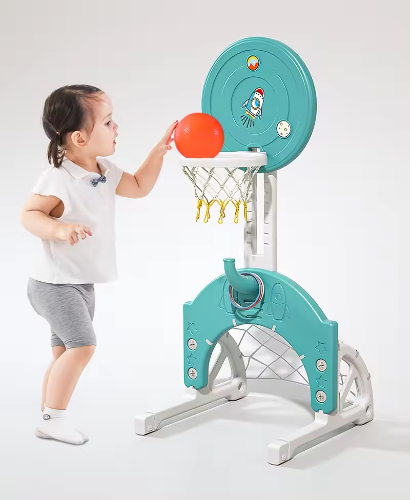 - Setul contine cos de baschet,poarta de fotbal, joc de aruncat inele