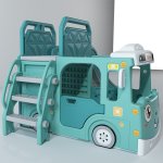 Acest set de joaca dragut si colorat ofera 4 functii: un tobogan , un leagan sigur,cos de baschet si autobuz.