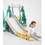 Spatiu de joaca 4in1 Nichiduta Garden Happy Turtle Arcada Blue cu Tobogan, Leagan cu bara de protectie detasabila, Jucarie muzicala, Cos de baschet cu inaltime reglabila, Minge si Poarta de fotbal