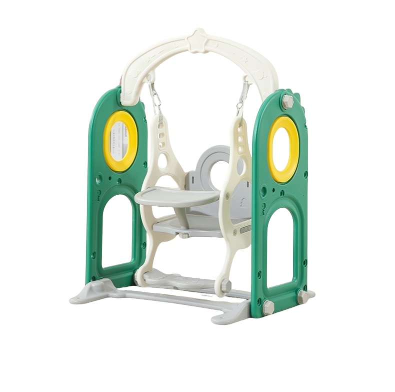 Spatiu de joaca pentru copii Nichiduta Garden green/white, de interior/exterior, Leagan muzical cu masuta, tobogan, treptele de acces, balustrade laterale de sustinere, 150 x 170 x 110 cm