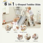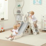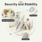 Spatiu de joaca pentru copii Nichiduta Garden grey/white, de interior/exterior, cu tobogan, balustrada de sustinere, treptele late, dimensiune 153 x 67 x 80 cm