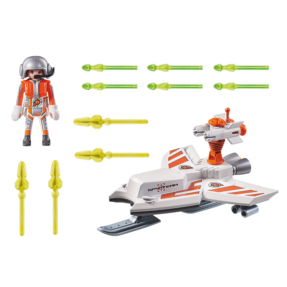 Setul include: 1 figurina, 1 avion (este echipat cu derapaje pentru calatoria pe gheata), 8 rachete mici, 2 manusi, 1 casca cu microfon.