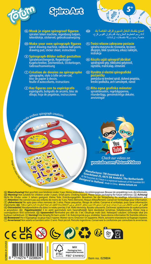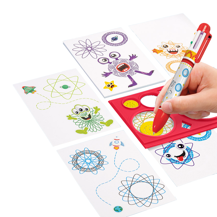 Set creativ spirograf, pix cu 6 culori, caiet și abtibilduri.
