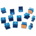 * Cutia cu stampile contine 26 de litere majuscule si 8 stampile cu semne de punctuatie. Un set ideal pentru a scrie prima scrisoare lui Mos Craciun, sau prima felicitare de Paste.
