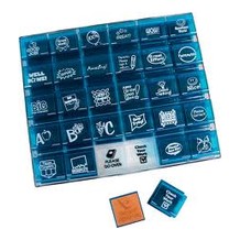 Set de stampile viu colorate ce masoara 4 cm, cu imagini si cuvinte distincte, de incurajare.