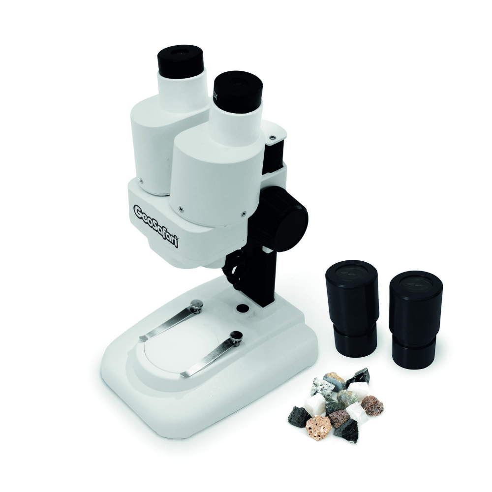 Ajuta-l pe cel mic sa descopere tot ce il inconjoara, in cele mai mici detalii, cu ajutorul acestui stereomicroscop, special conceput pentru cei mici. Forma acestuia este perfect adaptata copiilor.