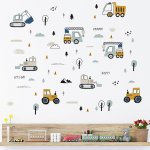 Sticker decorativ pentru copii autoadeziv Tractoare si Excavatoare 50x90 cm