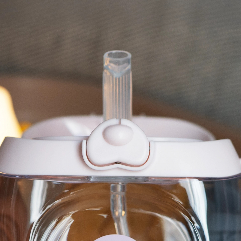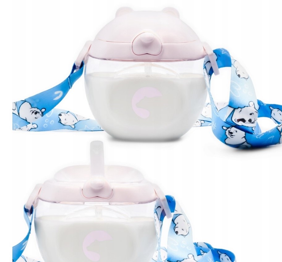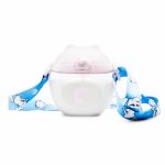 Sticluta de apa din tritan pentru copii, Kindnort Baer, sterilizabila, pai moale din silicon cu bila gravitationala, prevazuta cu snur reglabil, capacitate 300 ml, Pink