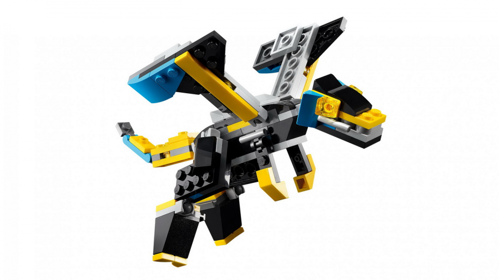 Ei pot construi Super Robotul pozitionabil care are un set de aripi pe spate, apoi il pot reconstrui ca un robot dragon pozitionabil, sau un minunat avion cu reactie, cu aripi reglabile.