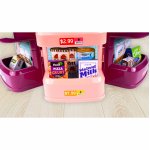 Jucăria are un coș de cumpărături, care permite mai multor persoane să se joace - unul face cumpărăturile, iar celălalt stă în spatele tejghelei și îl servește, mare distracție!