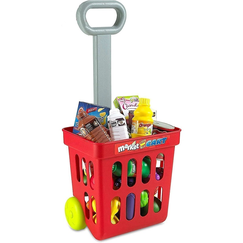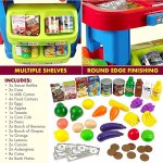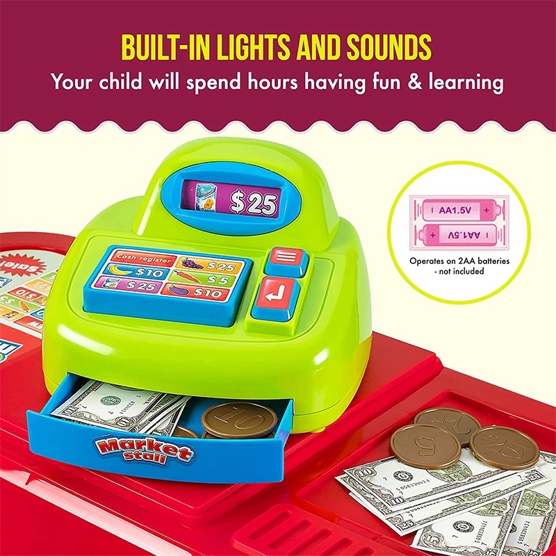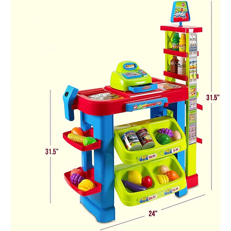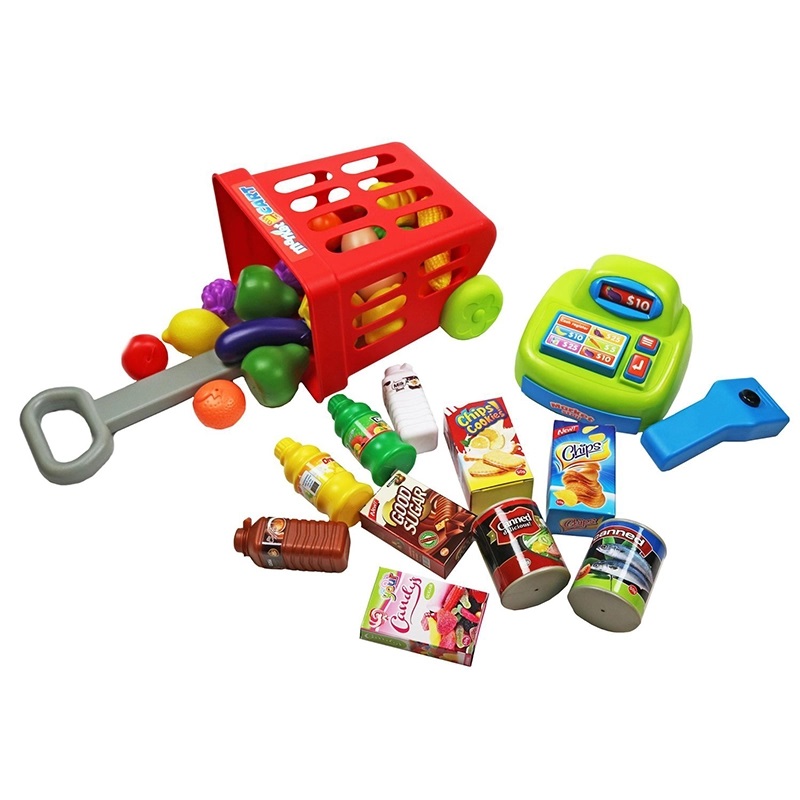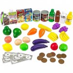 * Pe langa casa de marcat, copiii tai vor gasi si o multime de produse de vanzare, precum fructe, legume, bauturi, dulciuri si multe alte bunuri.