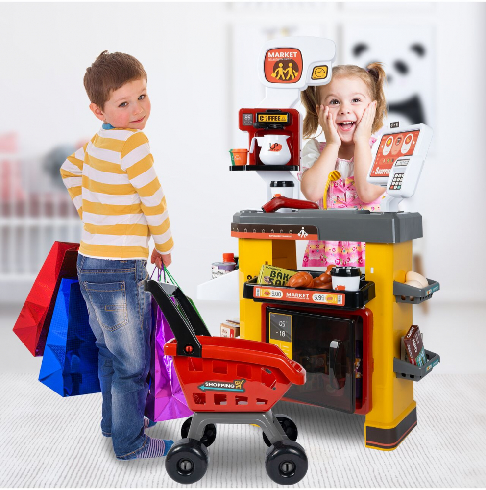 * Un supermarket complet echipat, este o propunere distractiva pentru fiecare mic antreprenor!