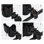 - Pozitioneaza suportul pe manerul caruciorului si slabeste clema.