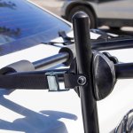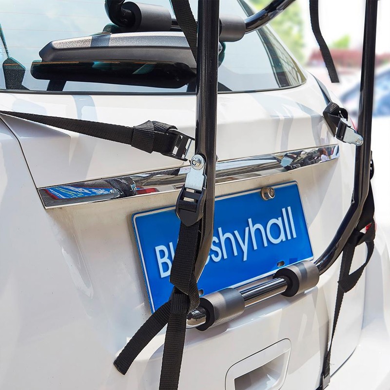 Suportul este realizat din otel si este echipat cu tampoane moi de cauciuc care au rolul de a proteja masina, iar montarea se face cu ajutorul curelelor si clemelor de siguranta. Acesta este usor de montat si se potriveste cu aproape toate tipurile de autoturisme, transportand bicicletele in siguranta. Designul cu curele laterale pentru o stabilitate sporita se potriveste masinilor hatchback, monovolumelor și SUV-urilor.
