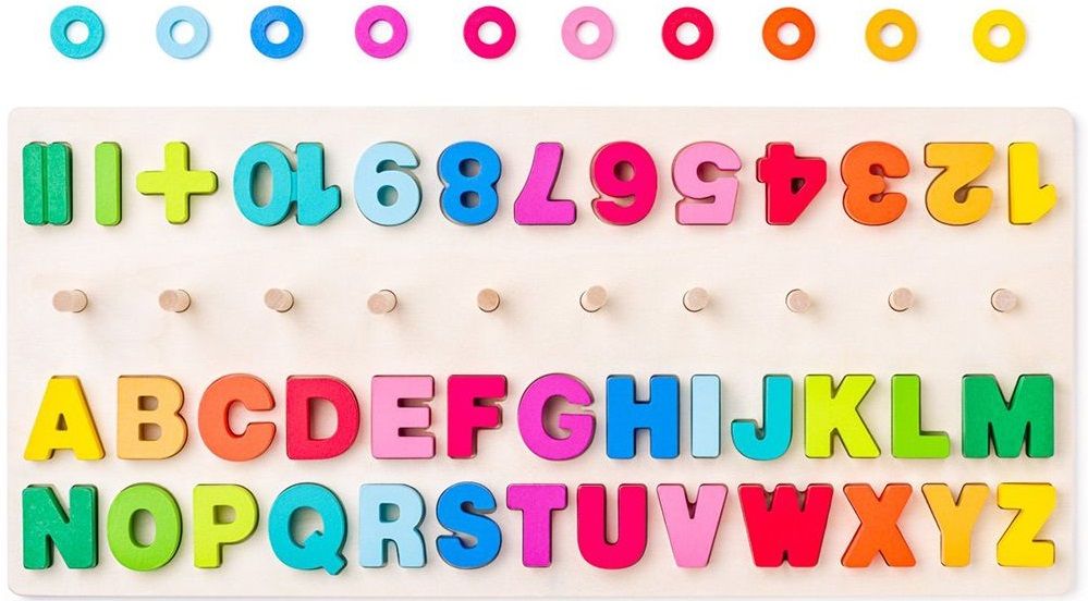 O jucarie didactica cu care copilul invata sa recunoasca literele, cifrele si datorita inelelor colorate, valoarea pe care acestea o reprezinta.