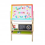 - Sevaletul educational are un suport pentru crete, pixuri, creioane si creioane. Cretele si markerele sunt incluse in set.