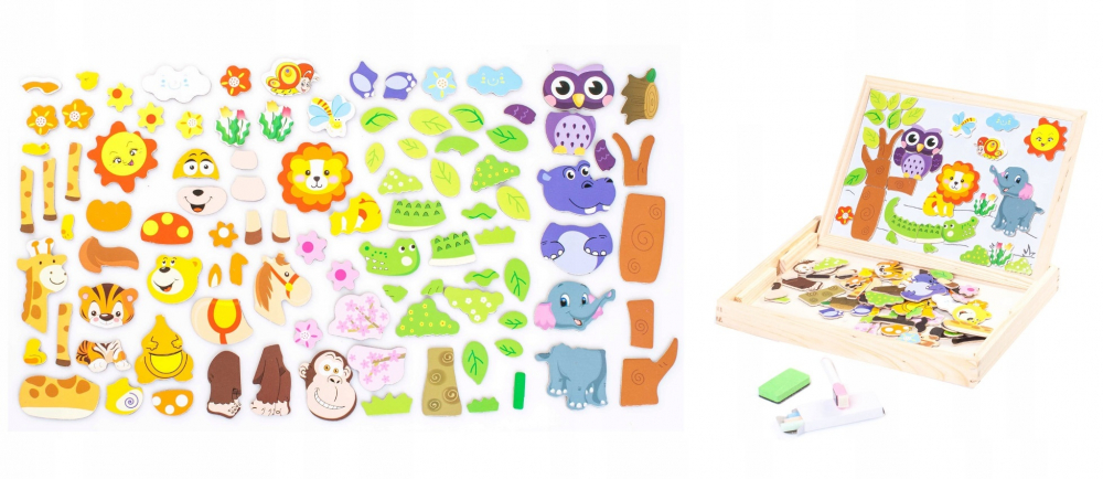 3. Kitul include peste 150 de magneti - puzzle-uri pentru aranjarea animalelor, a personajelor si a altor modele.