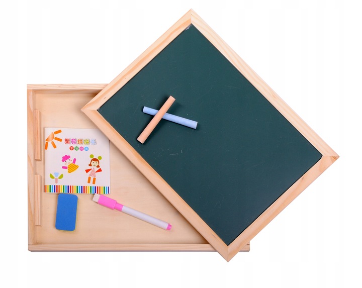 Partea neagra este o tabla traditionala pentru scrierea cu creta.