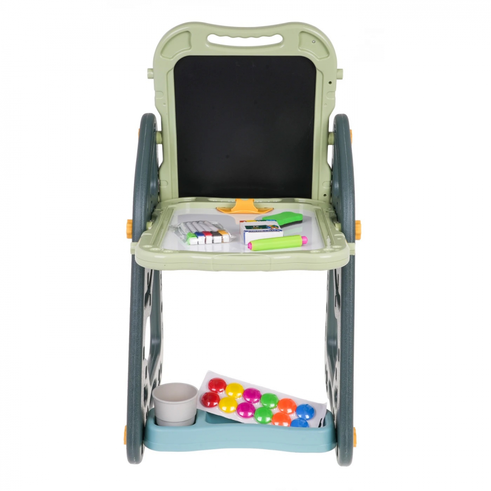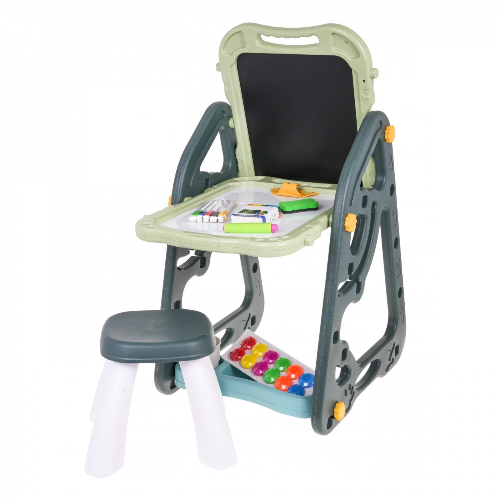 * Transforma-te intr-un adevarat artist, cu tabla magnetica suport pentru accesorii si scaunel;