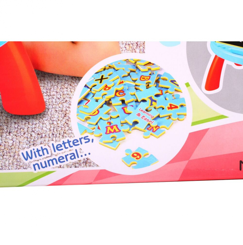 Pe suprafata magnetica a placii, se pot atasa litere si numere magnetice – atasate la set. Tabla are, de asemenea, un recipient practic in care puteti stoca cu usurinta accesoriile necesare.