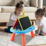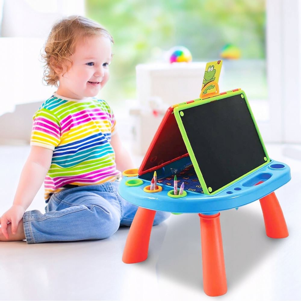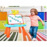 Tabla stimuleaza imaginatia copilului, concentrarea, abilitatile manuale, preda combinarea culorilor, copilul invata si primele litere si numere.
