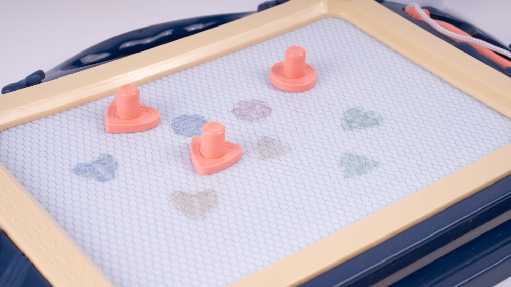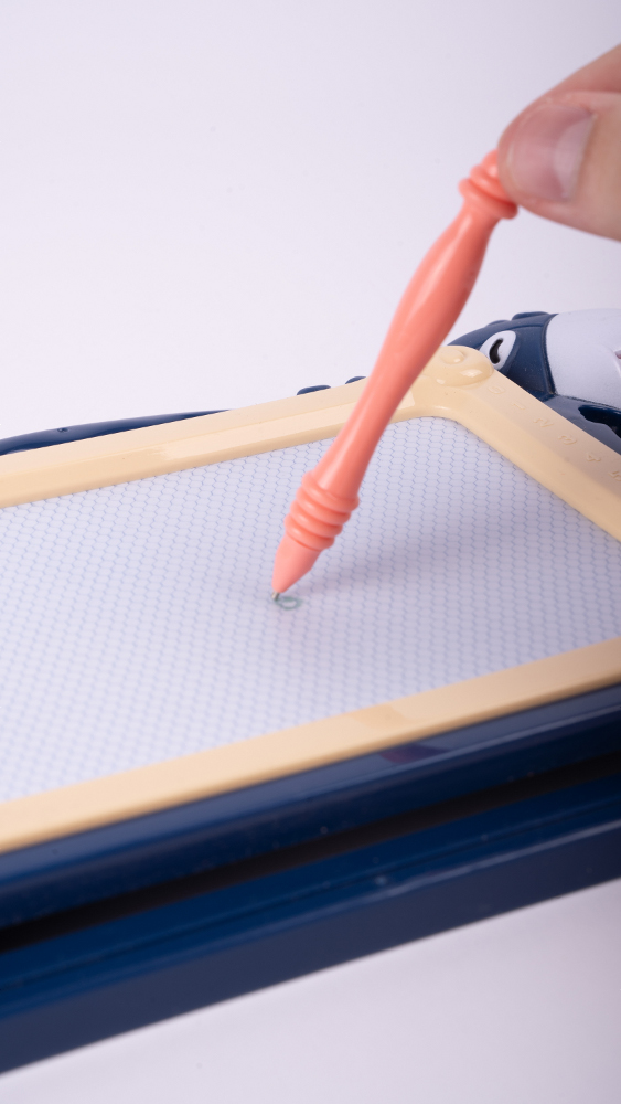 Un copil care deseneaza pe o astfel de tabla isi dezvolta imaginatia si este incurajat sa exerseze scrisul. Pe ambele parti ale tablei exista numere si litere , datorita carora copilul le poate asimila cu usurinta, distrandu-se in acelasi timp. Jucaria nu necesita hartie sau cerneala , asa ca va fi perfecta, de exemplu, pentru calatorii.