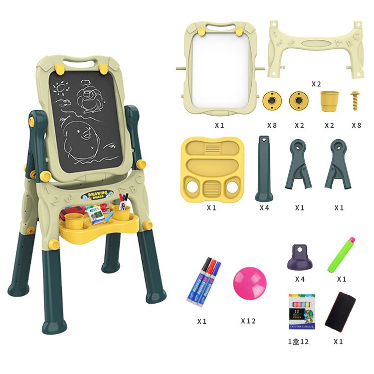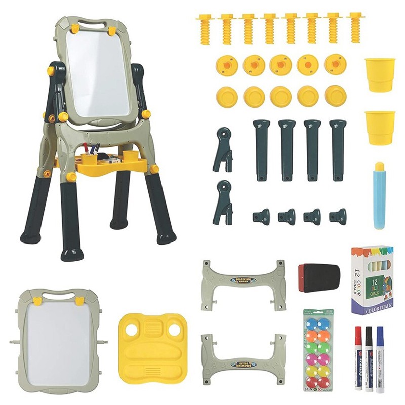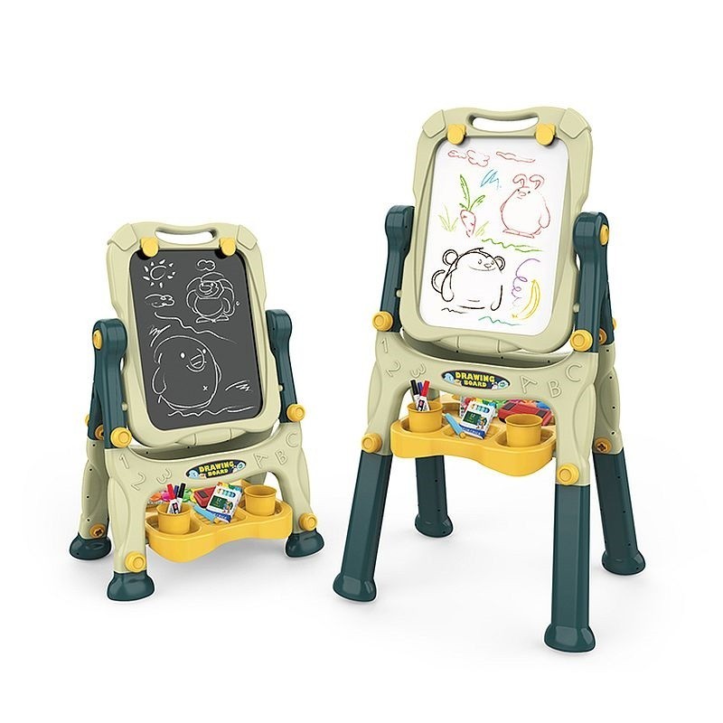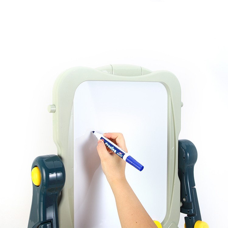 Copilul dumneavoastra s-a plictisit de traditionala tabla de scris? Alegeti un model de tabla de 2 in 1 pentru activitati creative, special creata pentru micii artisti. Aceasta are 2 fete: una alba pentru desenat si una neagra pentru scris, ambele fete pot fi folosite in acelasi timp, transformandu-se astfel intr-un joc de grup sau joc pe echipe. Suportul este robust si stabil, permitandu-va o rotatie la 360 grade pentru o utilizare cat mai confortabila.