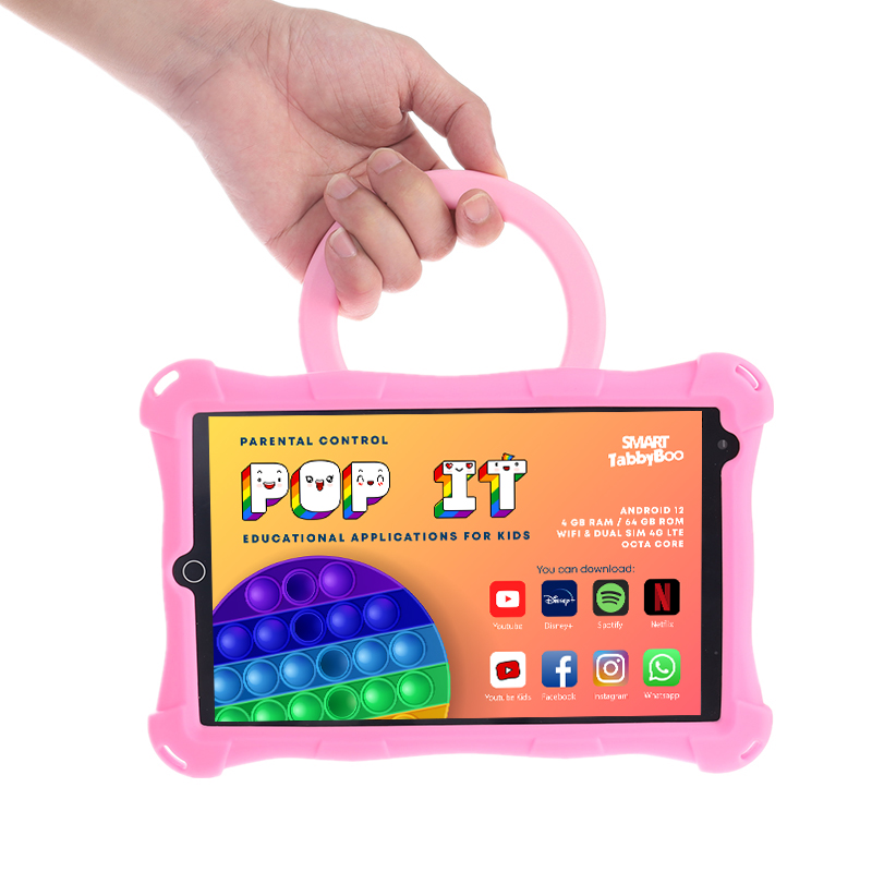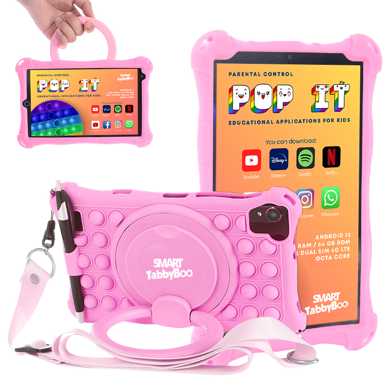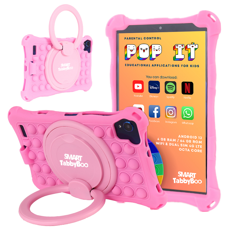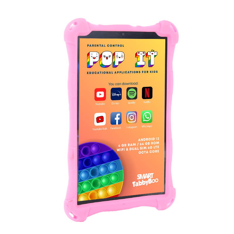 Tableta copii SMART TabbyBoo Popit 64GB 4GB RAM Android 12 SIM card & Wi-Fi OctaCore ecran 8 IPS 1000 jocuri pink