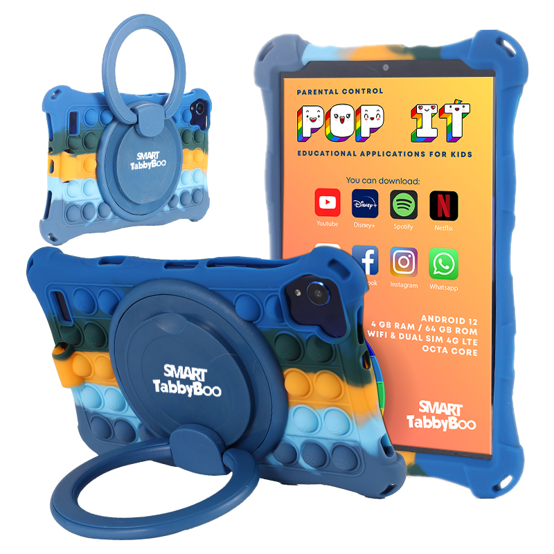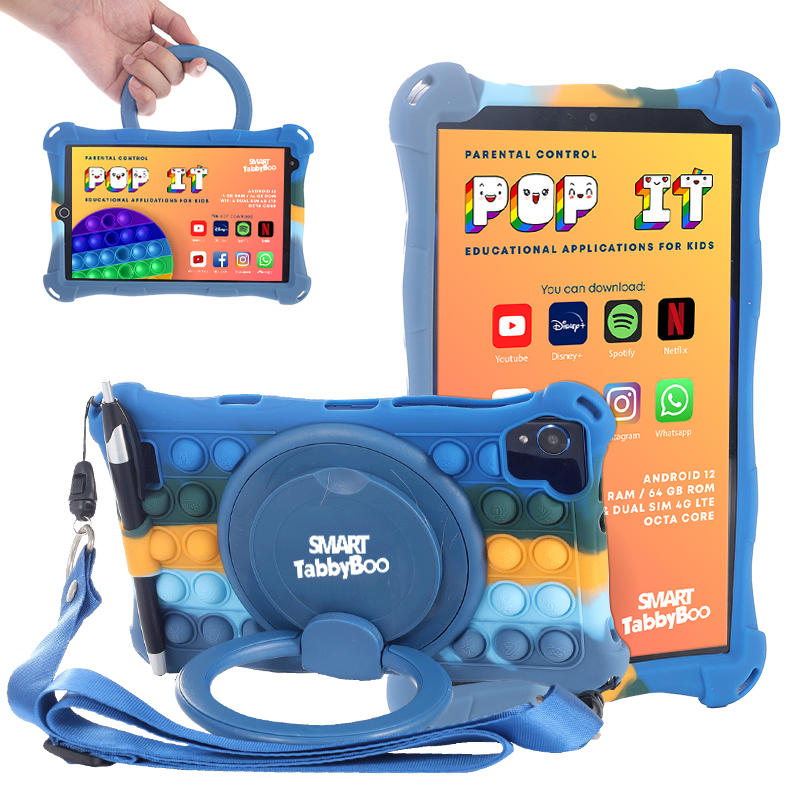 Tableta copii SMART TabbyBoo Popit 64GB 4GB RAM Android 12 SIM card & Wi-Fi OctaCore ecran 8 IPS 1000 jocuri navy