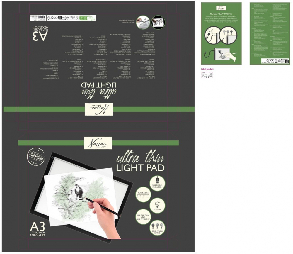 Aceasta tableta de dimensiuni mari (A3) ofera o suprafata iluminata uniform, ideala pentru desen, trasare, schitare sau orice alt tip de proiect artistic.