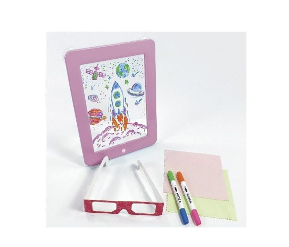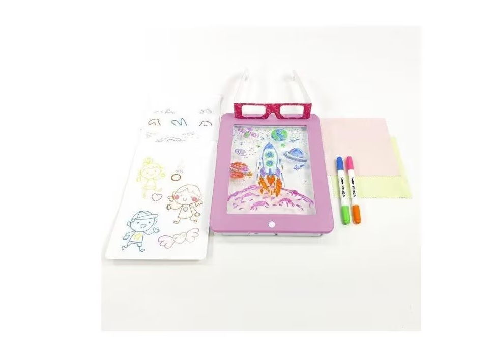 Tablita de desenat magica 3D cu LED, pentru copii, roz