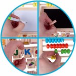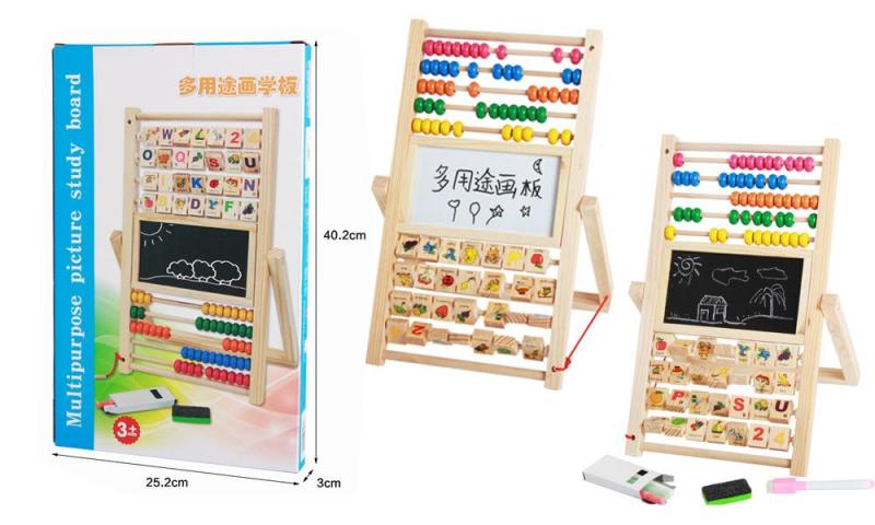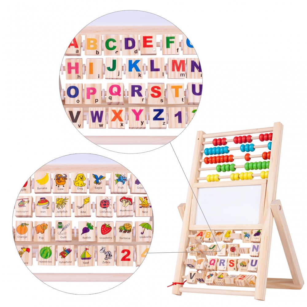 Tablita de scris din lemn, 2 fete, alfabet, socotitoare