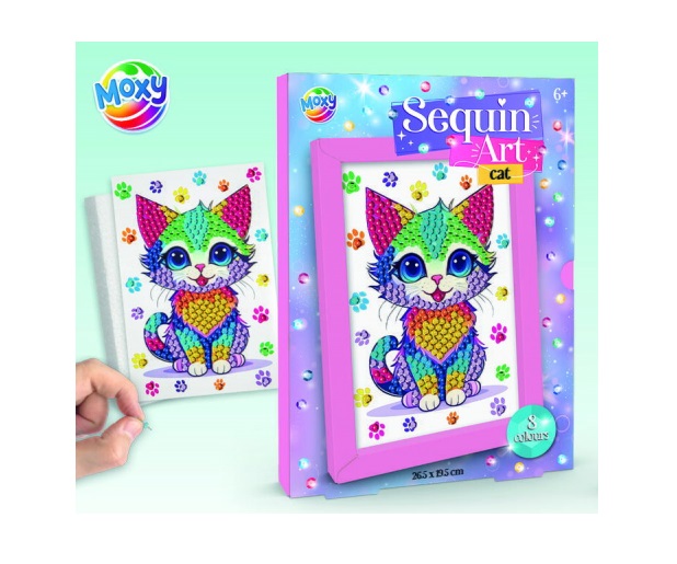 Imagineaza-ti un tablou vesel si colorat, realizat din paiete stralucitoare, care prinde viata sub forma unei pisicute!