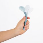 Tacamuri flexibile pentru copii lingurita si furculita fara BPA albastru 6+ luni Reer