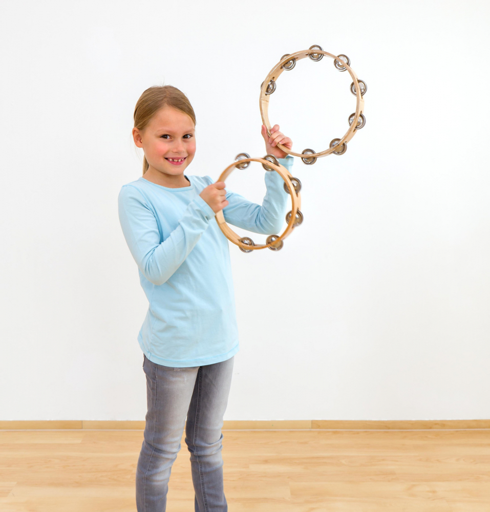 Această tamburină este o completare esențială în orice colecție de instrumente muzicale pentru copii.