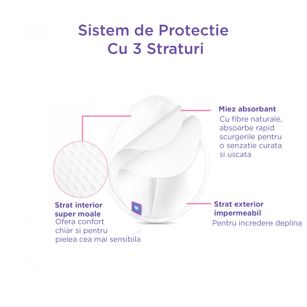 Ultimul strat are margini antialunecare, ce asigură o fixare perfectă a tamponului pe sân.