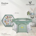 Playbox, Cangaroo este un tarc de joaca hexagonal creat cu atentie asupra sigurantei si comoditatii celor mici.Playbox Cangaroo este o alegere practica pentru orice parinte care cauta securitate, mobilitate si confort pentru copilul lor.