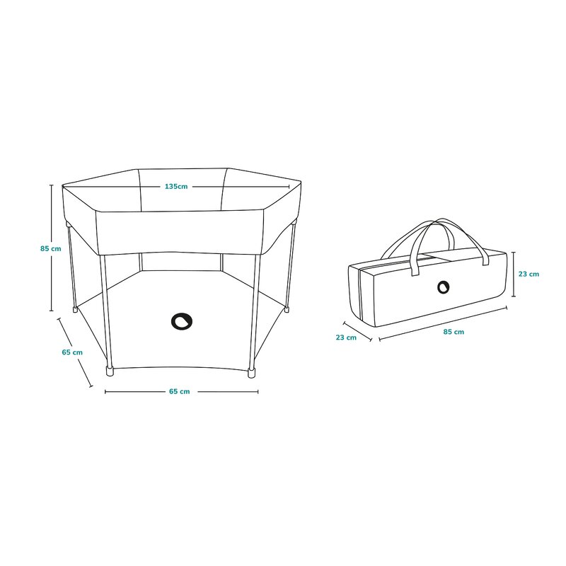 Forma hexagonala a tarcului de joaca este un spatiu interesant si functional pentru joaca si depozitarea accesoriilor copiilor.