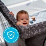 Constructie robusta si stabila: fabricat din otel, aluminiu si material Oxford 210D, tarcul este conceput sa reziste la socurile si miscarile copiilor. Indeplineste standardele stricte de siguranta EN 716-1:2017 si EN 716-2:2017.